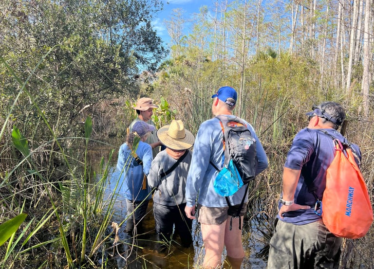 Trek through deep swamp waters into a cypress dome to experience the mystical beauty of nature's hidden gems.
